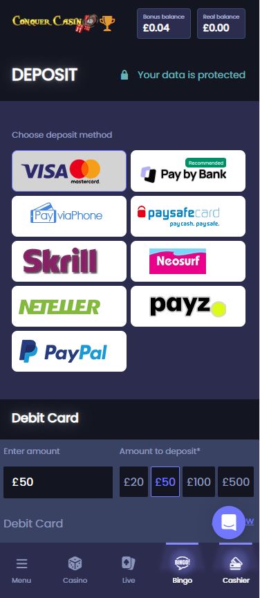 Yes, Conquer Casino charges a £2.50 fee for every withdrawal. This is a flat fee regardless of the amount you are taking out. We suggest waiting until you have a larger balance to make it more cost-effective.