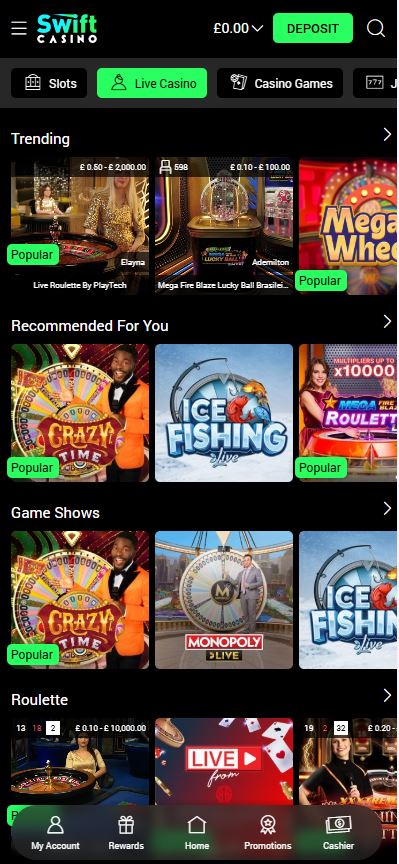 The user experience is where Swift Casino shines. The site uses a dark, sophisticated palette that is easy on the eyes. Navigation is logical. You won’t find yourself lost in a maze of menus. UK players have access to dedicated iOS and Android apps. These are well-optimised and mirror the desktop experience perfectly. If you prefer not to download anything, the mobile browser version works just as well. It uses HTML5 technology to ensure the games fit your screen perfectly.