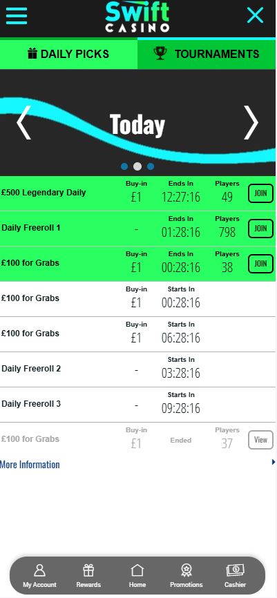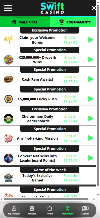 Swift doesn’t just forget you after the first deposit. Their loyalty setup involves climbing through different levels to unlock better rewards. You earn points as you play, which translates into perks like faster withdrawals or a dedicated account manager. They also run frequent tournaments. These are great if you have a competitive streak. You can buy into these or find freerolls that offer a decent way to snag extra spins without dipping further into your balance.
